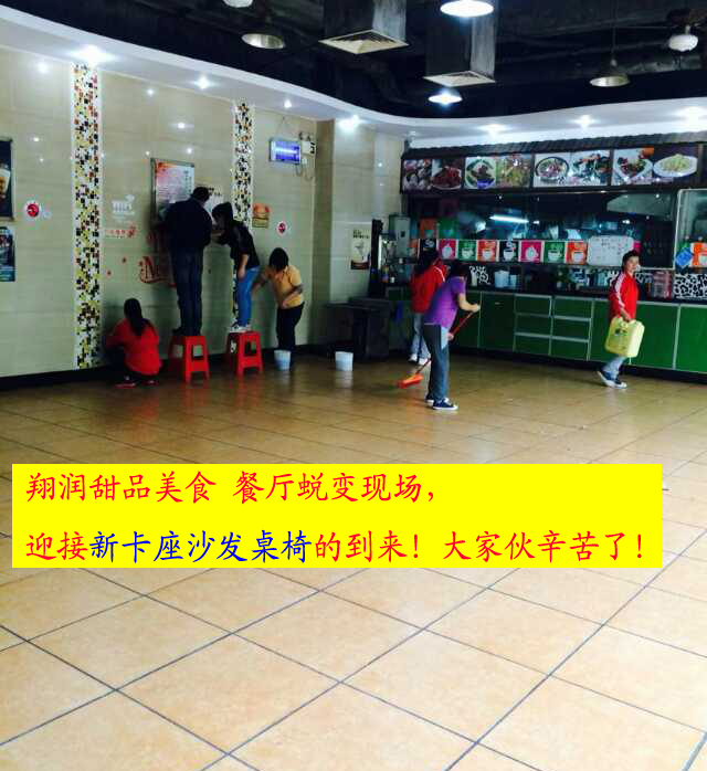 翔润甜品美食餐厅蜕变现场,迎接新卡座沙发桌椅的到来!大家伙辛苦了!www.df3158.com