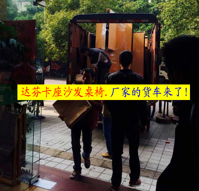 达芬卡座沙发桌椅厂家的货车来了!www.df3158.com