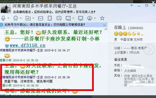 新客户,也是给力,都喜欢在其它餐厅看卡座商标,找达芬,回馈图片,有图有真相!