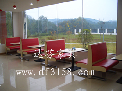 以下图片为达芬家具定制KFC卡座沙发KFC桌椅实景展示>>
