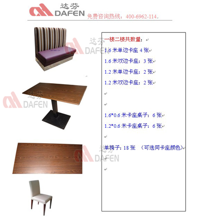 单椅子:18张 (可选同卡座颜色)