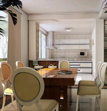 家居装修中餐厅装修效果也会反过来左右 他的用餐心情。餐厅装修中,桌椅的摆放是有讲究的,和谐地搭配餐桌椅,也就相当于在和谐地搭配自己的生活。