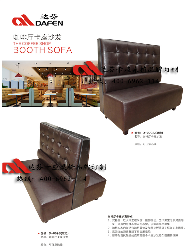 编号:D-009B(双边)咖啡厅卡座沙发 分类:卡座沙发系列