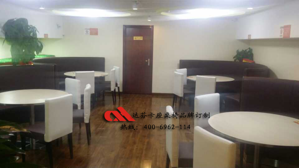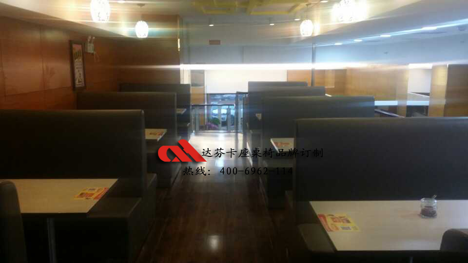 湖南省长沙市开福区藏珑湖上花园2-10栋永和豆浆“餐厅卡座沙发桌椅由达芬家具制造”!