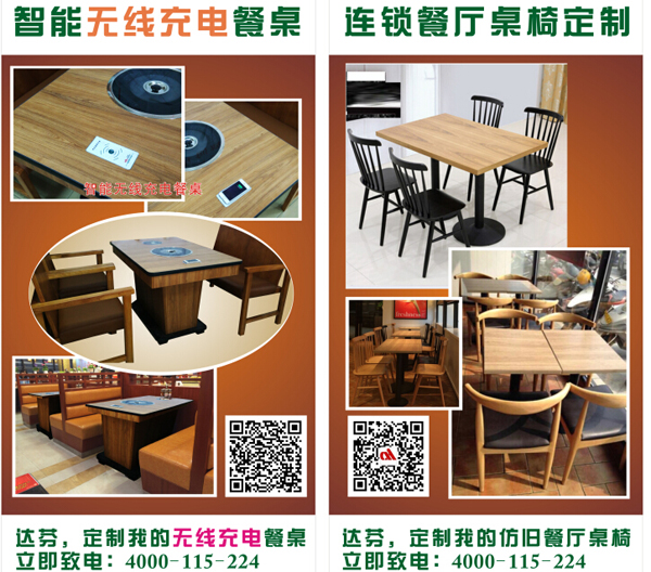 达芬餐厅家具主要服务连锁餐饮餐厅桌椅及卡座沙发,茶餐厅沙发桌椅、西餐厅沙发桌椅、咖啡厅沙发桌椅、快餐厅沙发桌椅等系列产品的配套设计,服务以及无线智能充电餐厅系统解决方案。