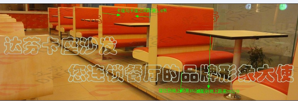 答:定制卡座沙发的达芬家具厂家都拥有标准尺寸的:【卡座沙发】座位离地45公分,桌子高75公分,卡座与卡座之间为1.8米为标准。