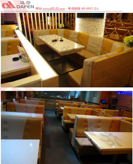 快餐卡座沙发布局装饰餐厅充满清新自然的感觉,快餐卡座沙发让人放松,找到归属感。整款快餐卡座沙发选择接近大自然,清新自然,隐约中仍然可以感觉到奢华。