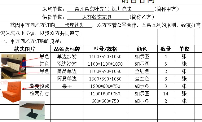 惠州市 惠东县 黄埠镇下圩广场路北14栋1楼,深井烧味订制达芬快餐卡座沙发-达芬快餐卡座沙发订制数量款式如下:
