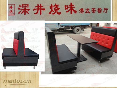 惠东县深井烧味港式茶餐厅卡座沙发桌椅, 黄埠镇下圩广场深井烧味港澳茶餐卡座桌椅 由达芬家具统一订制