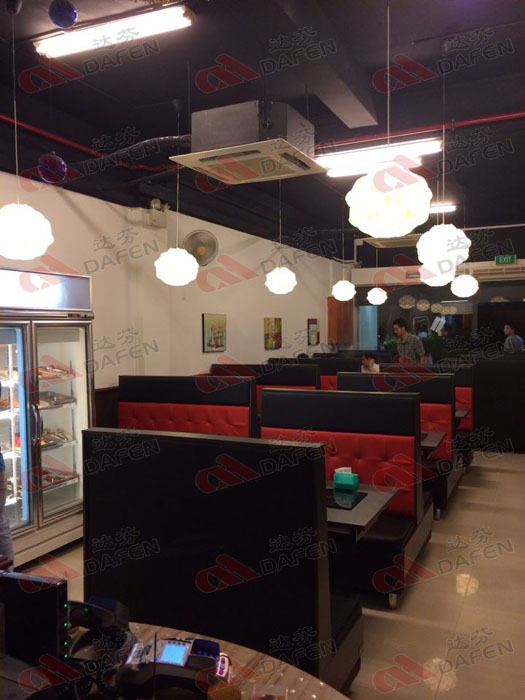 新加坡"高手烧烤"烧烤店由达芬家具订制,高手烧烤卡座沙发款式新颖,深受顾客们喜欢