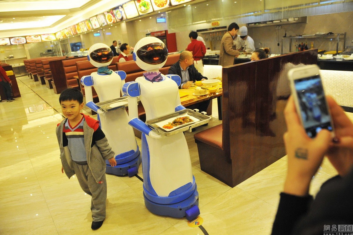 【热点新闻】:2014年11月24日,浙江省宁波市一家餐厅推出了机器人送餐服务,新奇的创意吸引了许多市民前来体验。