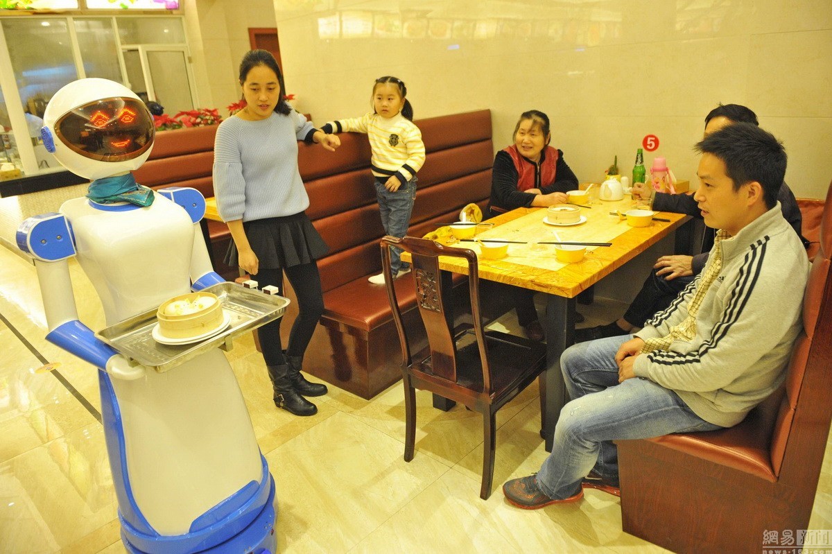 “机器人服务只在美国的好莱坞大片里看到过,没想到,今天机器人走进了我们的生活,可以为我们普通人服务了。”顾客刘小姐兴奋地说,他们一家人也是特地来这里吃饭的,就是想体验一下机器人的服务。