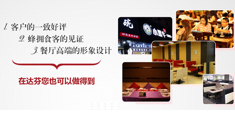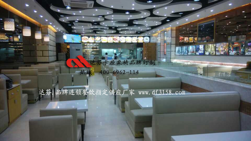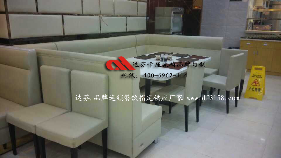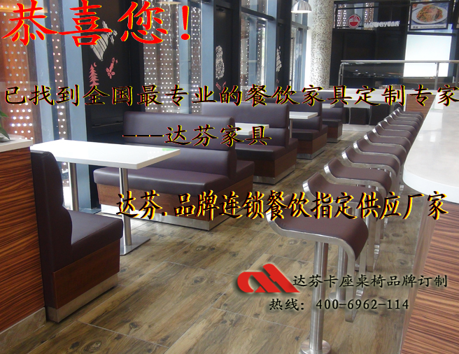 达芬家具的质量放心!达芬订做大型连锁餐厅卡座沙发桌椅,质量档次要求及外观形象比其他同行要求高点!