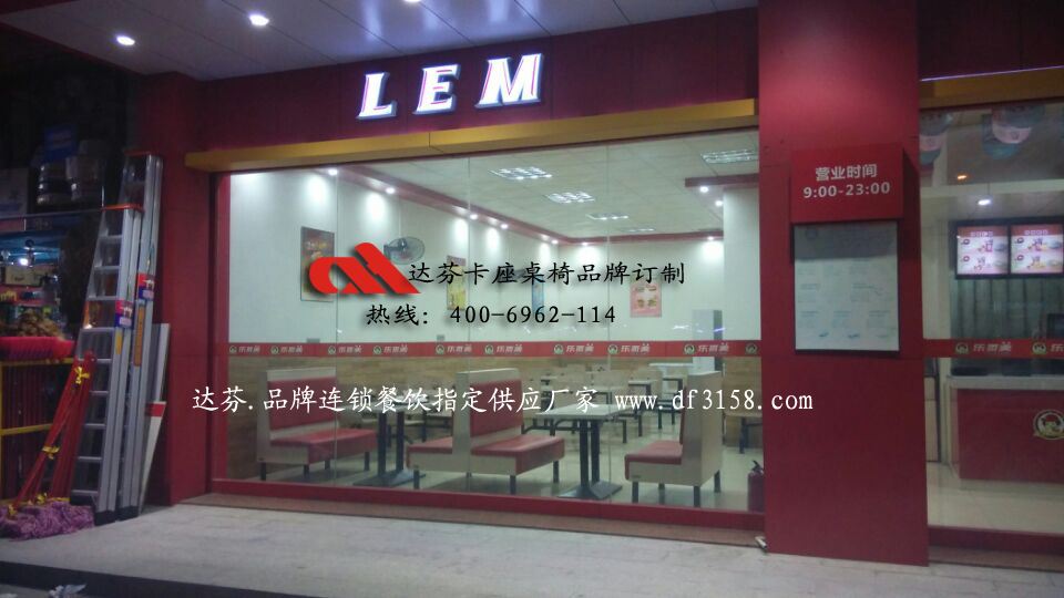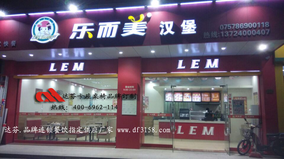 “乐而美”!中国快餐连锁品牌.乐而美汉堡卡座沙发桌椅达芬订制