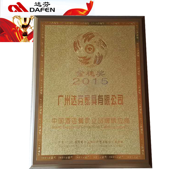 达芬家具荣获:2015中国(广州)酒店餐饮业品牌供应商金穗奖!