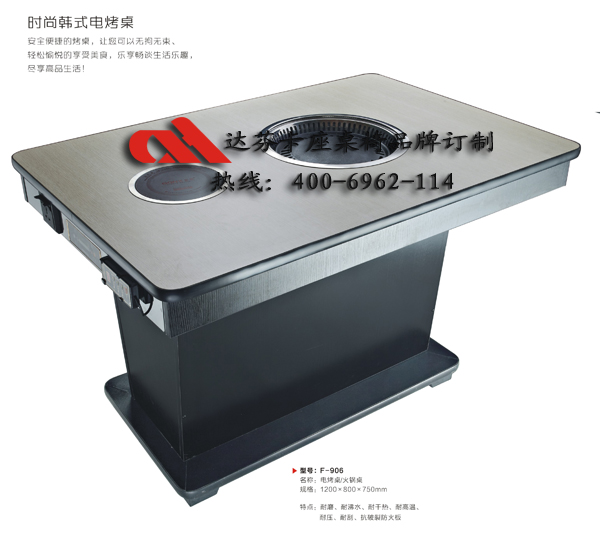 材质:F-906电烤桌/火锅桌,韩式电烤桌,规格:1200*800*750mm
