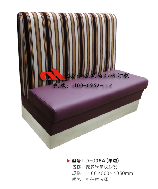 编号:D-008A(单边)麦多米条纹沙发 分类:卡座沙发系列