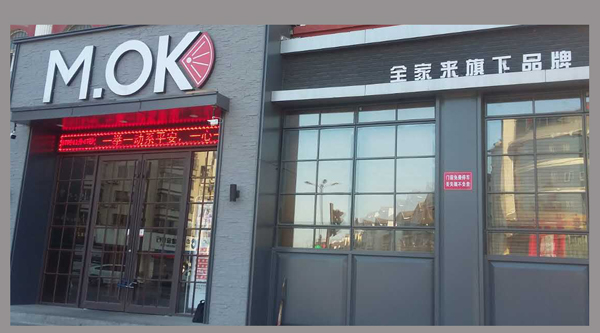 河南开封全家来牛排餐饮品牌旗下的M.OK餐厅实木桌椅由达芬家具统一标准化定制!