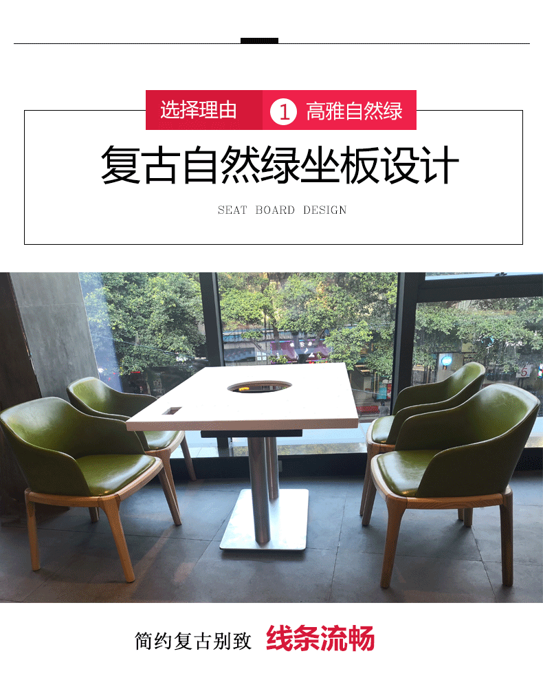 以复古绿为主调的简约风火锅店实木餐椅,别样的色调带来不一样的风格,格调,适合多种餐厅风格