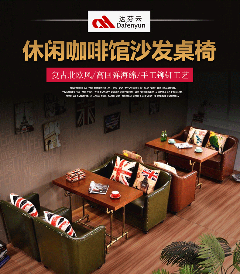适用于咖啡店、连锁餐厅等休闲咖啡馆沙发卡座达芬家具订制电话400-6962-114
