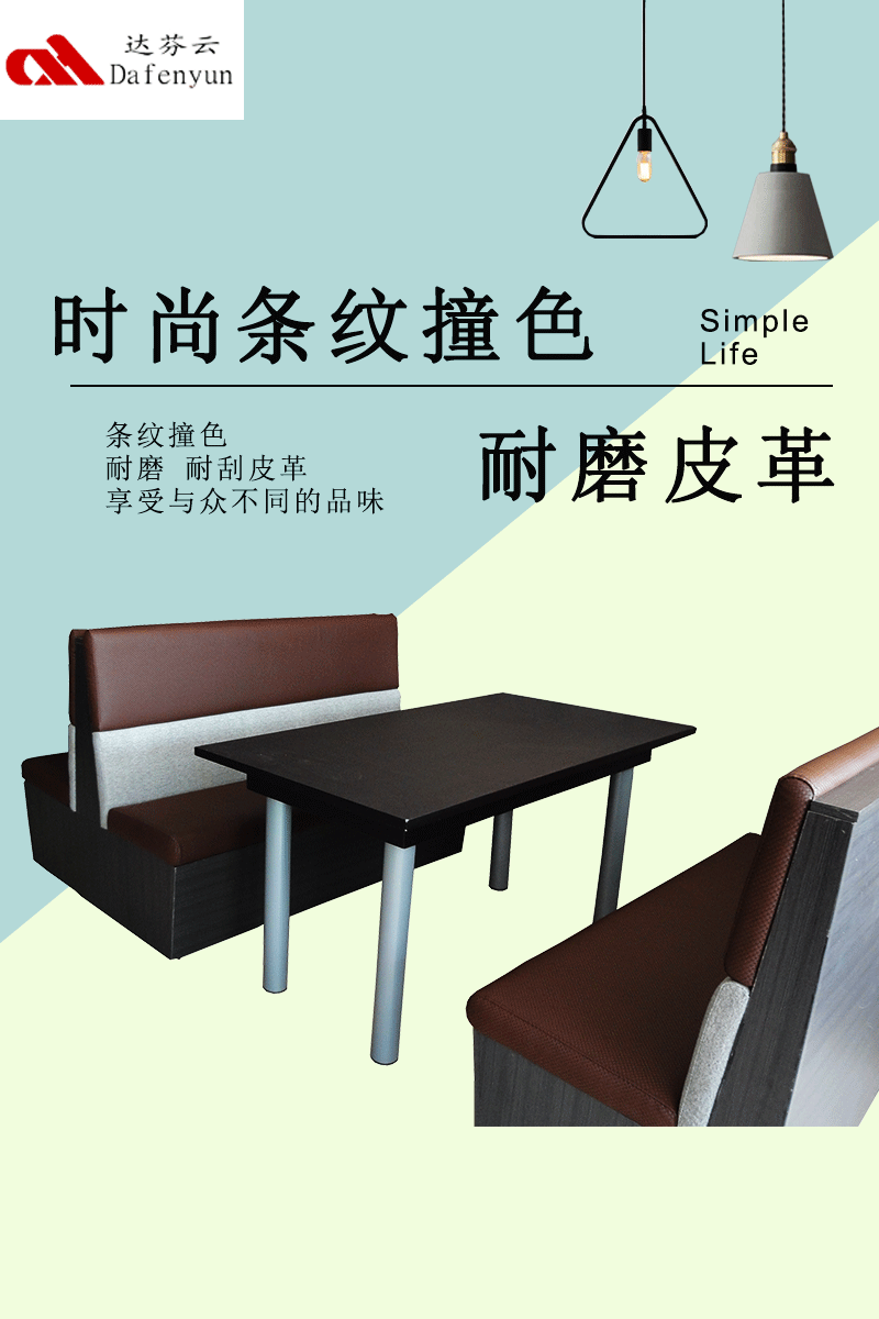 坐垫内部采用高密度海绵填充物,以时尚撞色为主调的简约风餐厅卡座沙发设计