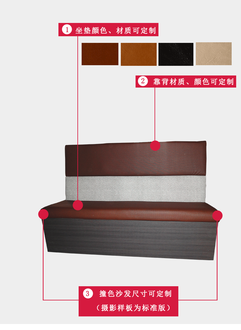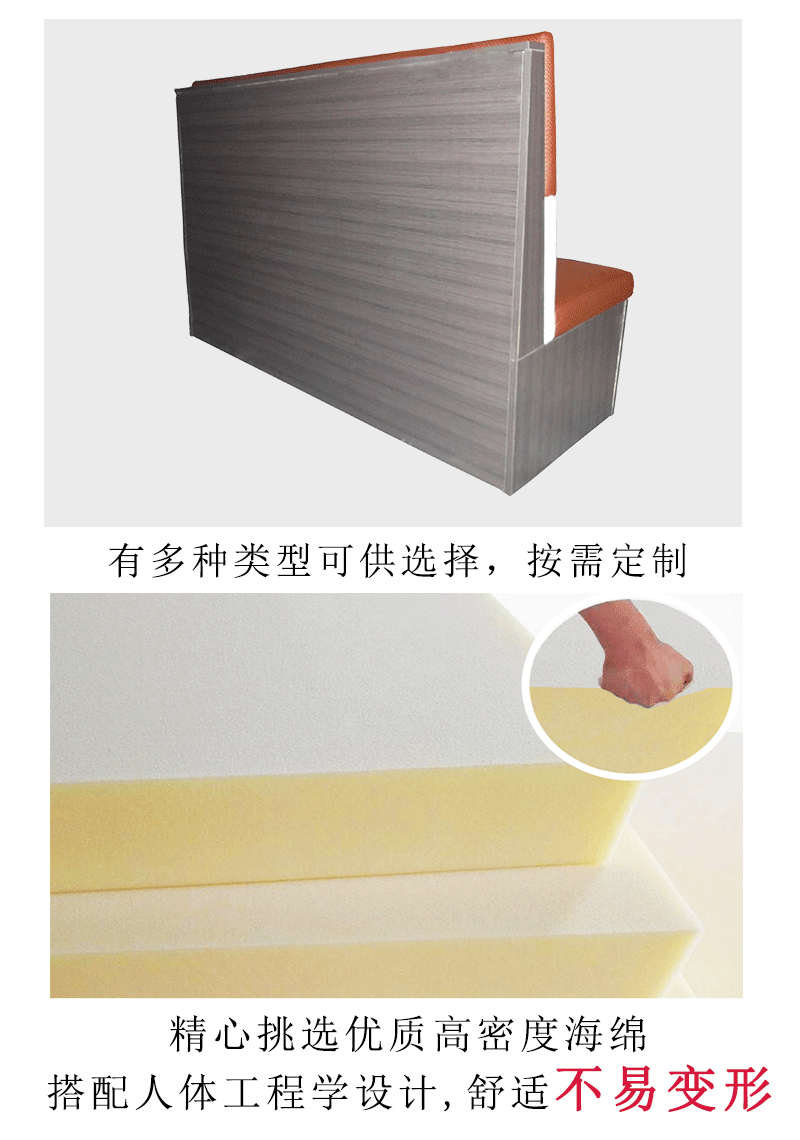 包间卡座的坐垫材质、颜色、规格均可按需定制